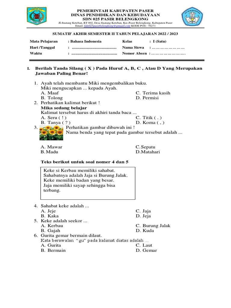 - Tugas Soal Pancasila Kelas 1 Semester 2, Ulangan Harian - February 20, 2026