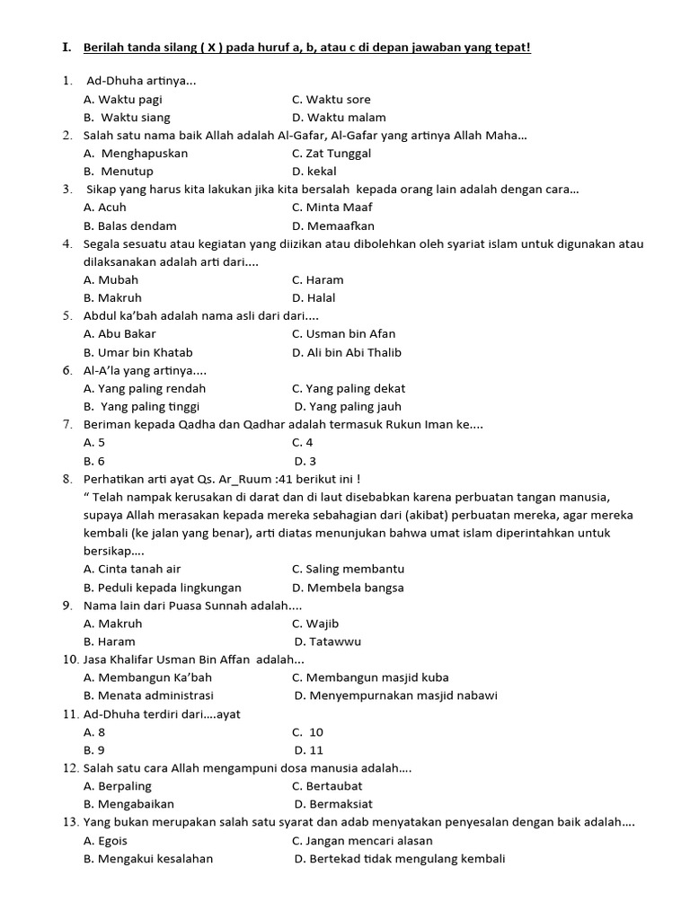 Latihan Soal Ujian SKI Kelas 6 SD Semester 1 Kurikulum Merdeka Berikut ini adalah latihan…