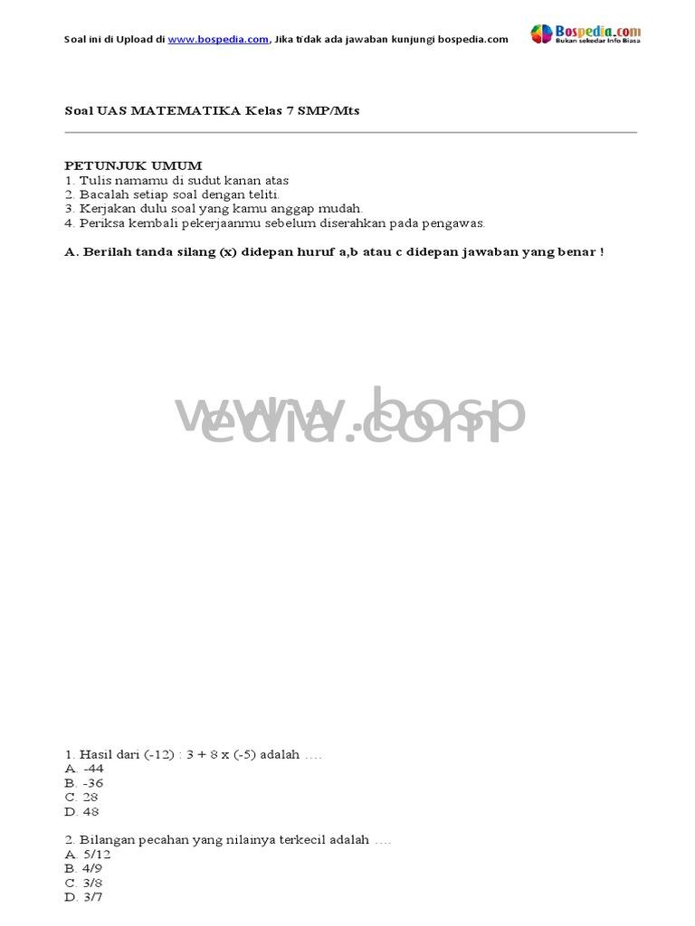 50 Soal PAS Matematika Kelas 7 SMP Semester 2 2026 Beserta Jawaban