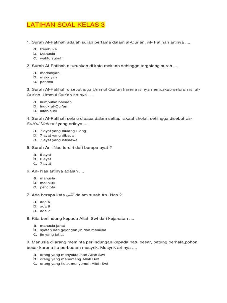 Latihan Soal BAB 6 Pendidikan Agama Islam (PAI) Kelas 3 SD Semester 2 Kurikulum Merdeka