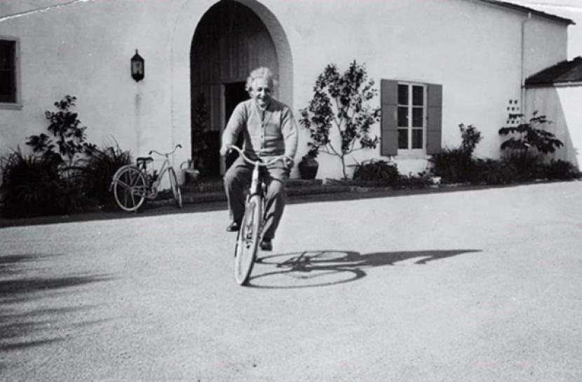 Einstein sendiri penyuka sepeda. Foto-foto klasik menunjukkan dia mengayuh sepeda di Santa Barbara atau Princeton, dengan rambut acak-acakan dan senyum lepas. Ia bahkan pernah mengatakan, ide teori relativitas spesial muncul saat ia bersepeda, merasakan angin dan gerak bebas. Bagi Einstein, sepeda bukan hanya alat transportasi, tapi simbol kebebasan dan pemikiran jernih.