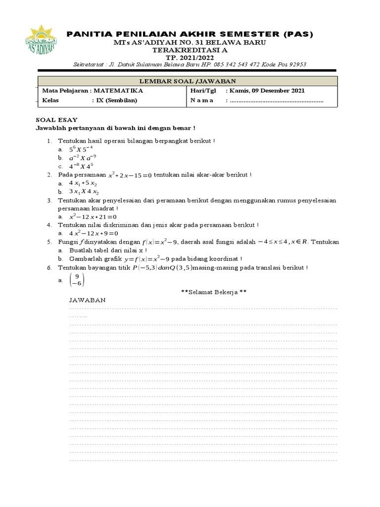 Ringkasan Berita Artikel ini menyajikan kumpulan soal Tes Kemampuan Akademik (TKA) Matematika untuk siswa Kelas…